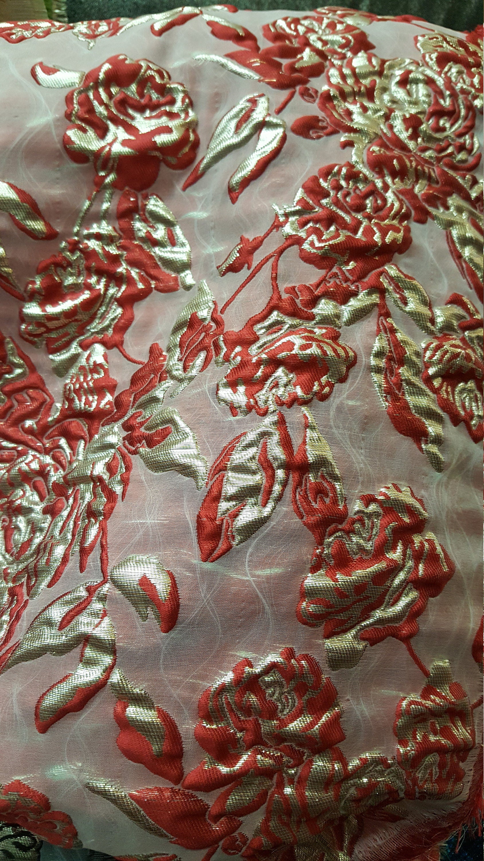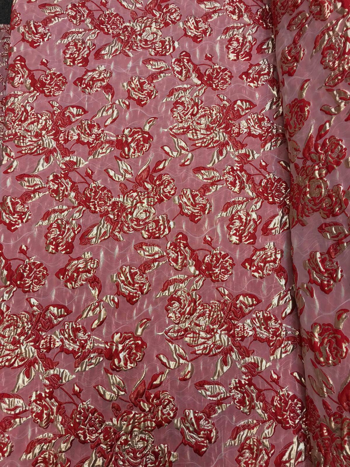 Brocade Floral Flowers Red and Metallic Gold Fabric by the Yard Shine Prom Evening Dress Gorgeous Decoration Dancer Clothing Jacquard Floral