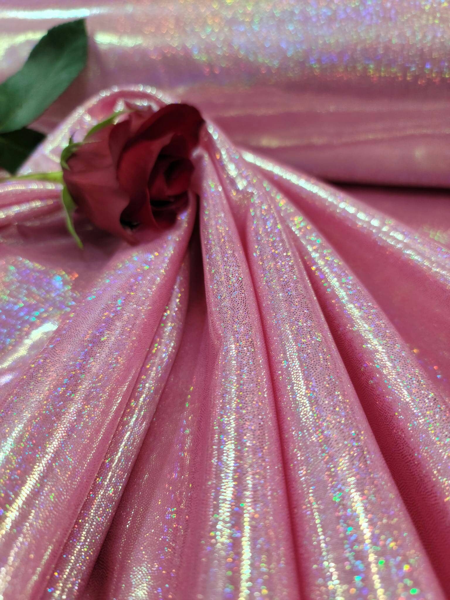 Pink Sparkly Glitter Foil Fabric By The Yard Glossy Ligth Weight Lame Gown Party Dress Decoration Shimmer Holografic Fashion Prom Party